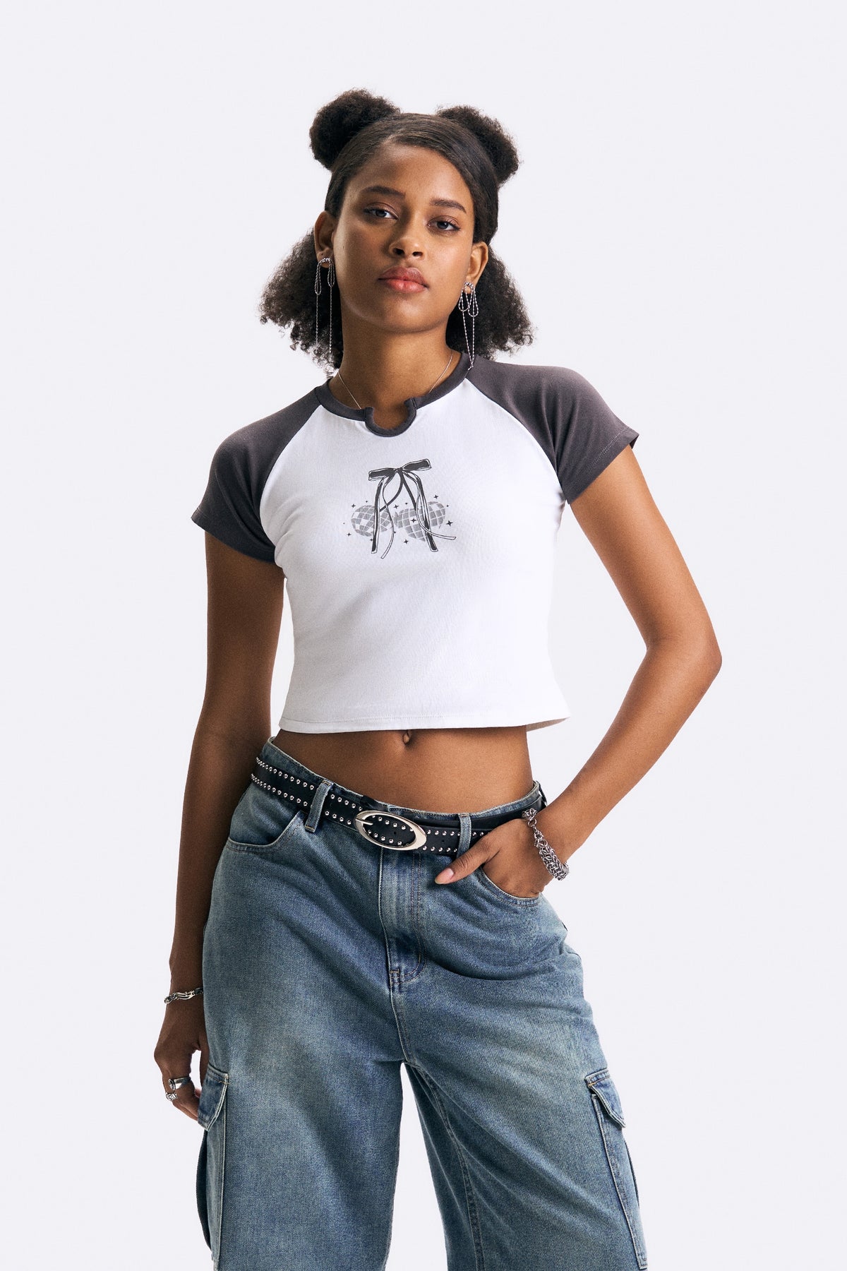 Raglan Graphic Slim Cropped T-Shirt