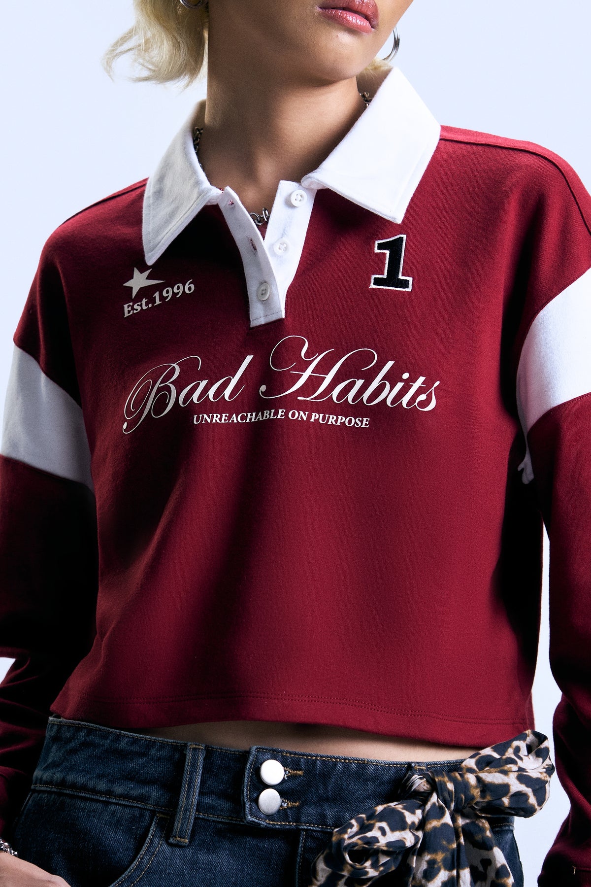 Long Sleeve Graphic Cropped Polo